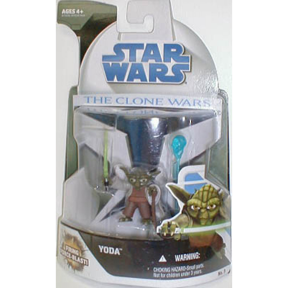 Hasbro - 2008. Clone Wars Action Figure Collection. Yoda is alarmed by the growing darkness that is spreading throughout the galaxy. While he monitors Obi-Wan*s and Anakin*s rescue of Jabba the Hutt*s kidnapped son, he is faced with his own challenge * leading clone troopers under his command into another grueling battle against the vast droid army. As he destroys one droid, another one quickly takes its place. Step into The Clone Wars animated world with this articulated action figure based on the expressive * not to mention green! * anime character. With a furrowed brow and the look of complete concentration, this figure comes with a lightsaber and a firing force-blast projectile. Aim the projectile at your target and stage your own galactic battles.