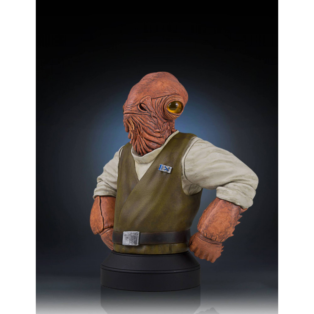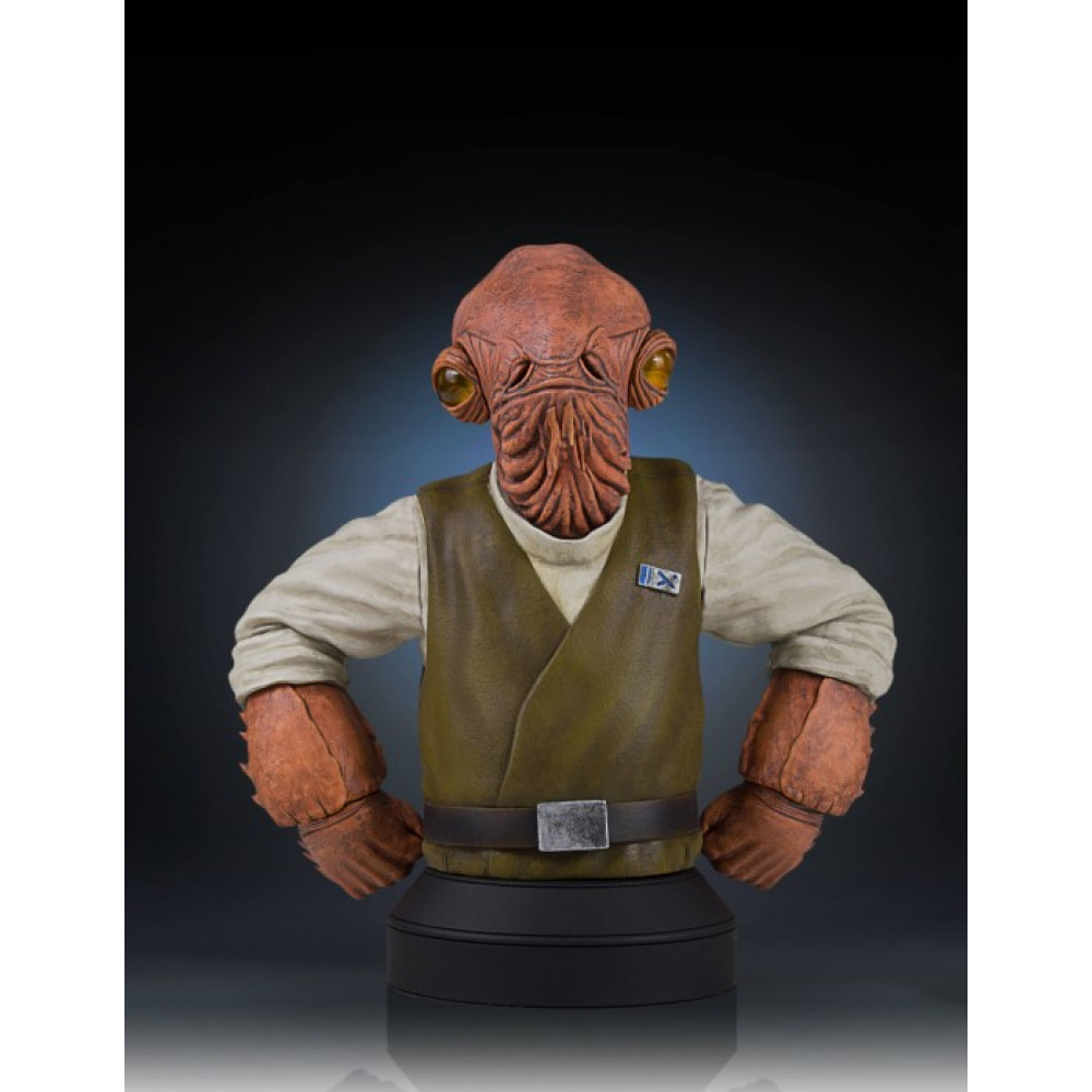 LTD. Released March 2017. Star Wars Admiral Ackbar Collectible Mini Bust - 2016 Premier Guild Exclusive. One of the greatest commanders in the history of the Rebel Alliance, as well as the Resistance, Admiral Ackbar was first introduced to fans in Star Wars: Return of the Jedi. Admiral Ackbar became well known for his role in the defeat of the Empire, and the destruction of the second Death Star, as well as his historical declaration “IT’S A TRAP!” Fans where extremely happy to see the character return, over 30 years later, in Star Wars: The Force Awakens. Facing another planet destroying menace, Admiral Ackbar’s strategic prowess comes in to play yet again, in aiding the Resistance to victory. Gentle Giant Ltd. is proud to present to our Premiere Guild members this deluxe bust of Admiral Ackbar as seen in Star Wars: The Force Awakens. This amazing collectible was digitally sculpted to exacting detail, and has been painted to feature the subtle patterns on his skin that show his aging. This attention to detail brings Ackbar to life once again as an amazing addition to your PGM collection!