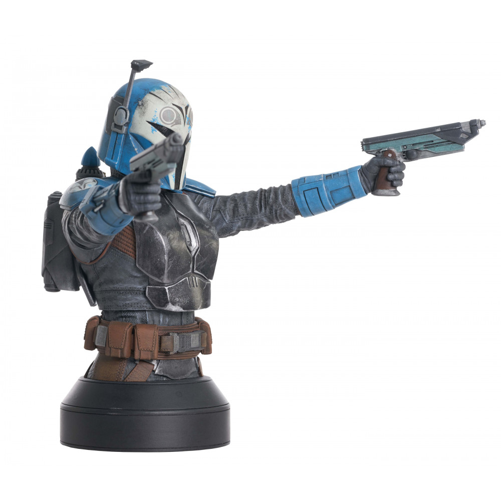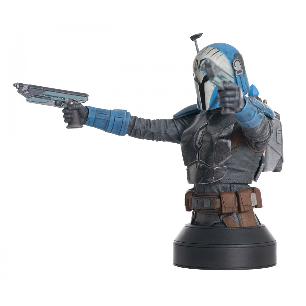 A Gentle Giant Ltd. release! For Mandalore! Mandalorian freedom fighter Bo Katan Kryze joins the 1/6 scale mini-bust line with this all-new release based on the second season of The Mandalorian! Wearing her famous helmet, Bo-Katan draws two pistols on an opponent (or two) in this approximately 6.5-inch mini-bust. Limited to only 3,000 pieces, this detailed resin bust comes packaged in a full-color box with a hand-numbered certificate of authenticity. Sculpted by Eduardo Trujillo!