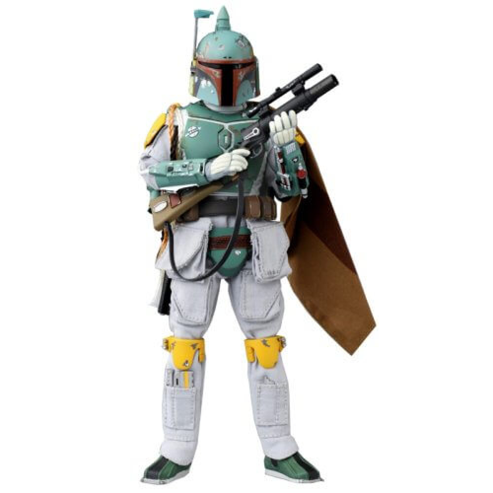 The Real Action Doll series continues paying tribute to Star Wars with this Boba Fett figures from The Empire Strikes Back! He comes with a metal endo-skeleton, which is super posable, and can be dressed up with all of his armor, weapons, helmet, etc., with 32 pieces in all! It includes a cloth suit, shoulder cape and wookie pelts, as well as his rifle, pistol and more. This is a follow-up to the Darth Vader from the same series. If there's anyone cooler than Darth Vader, it's the most feared bounty hunter in the galaxy: Boba Fett! The metal endo skeleton measures about 7" (17 cm) in height, and obviously requires assembly. This is a 30th anniversary edition Star Wars product from Tomy Direct. Packaged in a window box packaging with English and Japanese text.