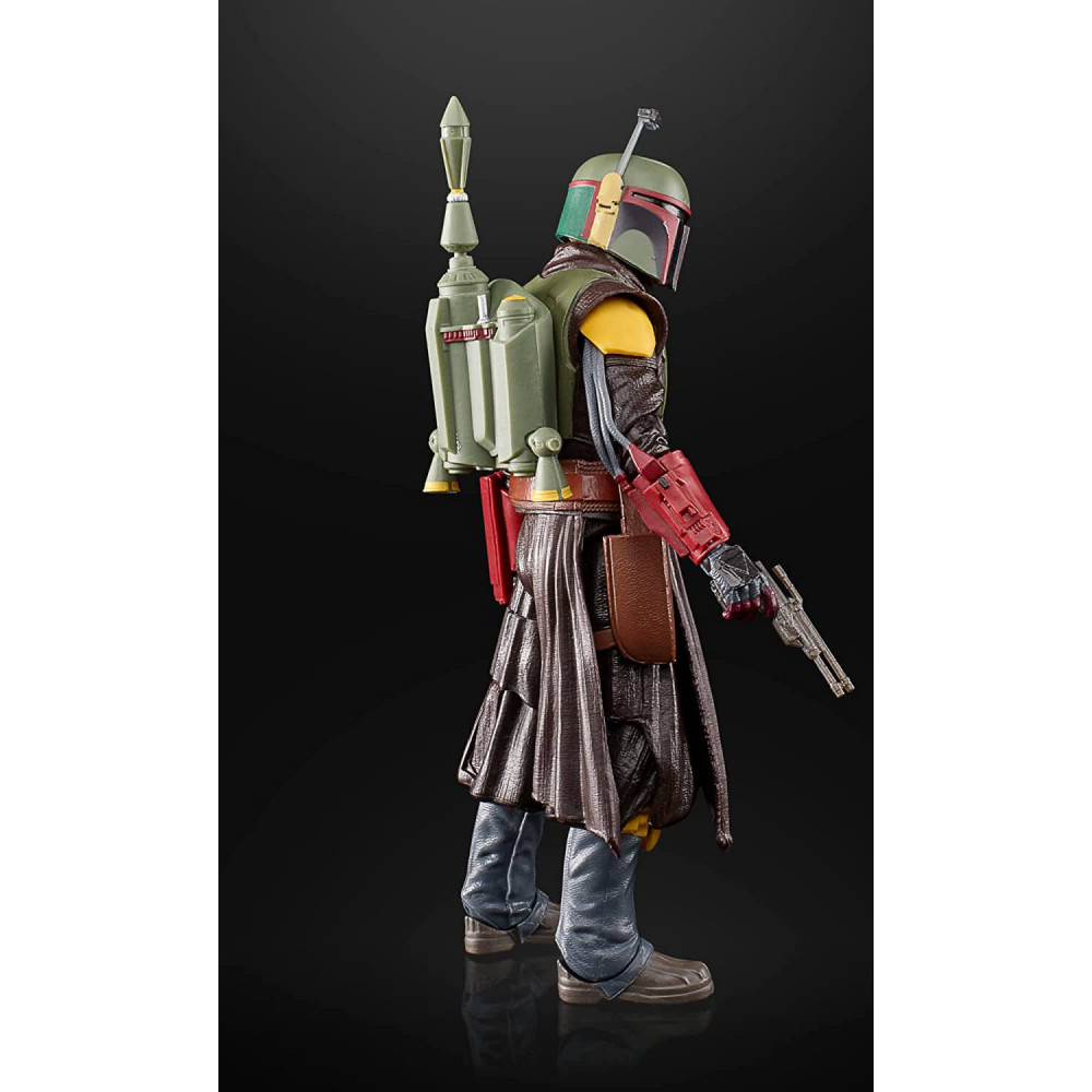 The 6-inch-scale Black Series figure is detailed to look like the Boba Fett (Throne Room) character from Star Wars: The Book of Boba Fett, featuring premium detail and multiple points of articulation.
