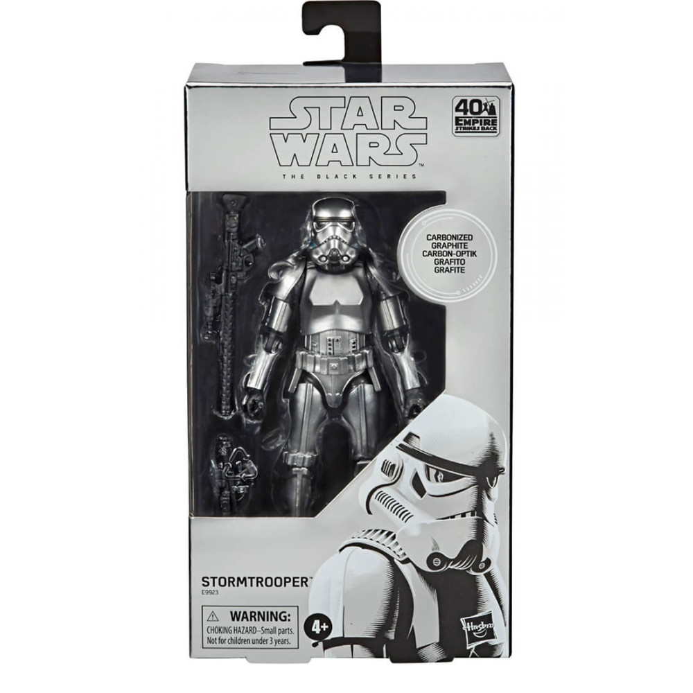 The 6-inch-scale Carbonized Collection Stormtrooper figure is carefully detailed to look like the character from Star Wars: The Empire Strikes Back, featuring premium detail, multiple points of articulation, and a metallic finish.