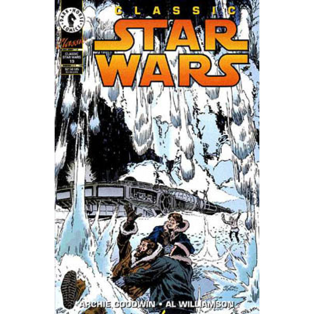 Dark Horse Comics - This series of reformatted and newly colored newspaper strip reprints is winding to a close. And lest anyone forget, Han Solo's still got a bounty on his head -- and there are plenty of opportunists who are dead-set on collecting. Han and the Rebels' recent adventures throughout the galaxy have not gone completely unnoticed by those interested in taking advantage of the easy money. In fairly short order, they meet up with an old foe who turns out to be a friend, and a couple of enemies -- who will have a much greater role to play in Return of the Jedi. A series of adventures ultimately winds up with our heroes crash-landing on Hoth, searching for a treasure which may or may not exist. This penultimate issue is graced by a brilliant new cover by veteran comic-book artist George Evans.