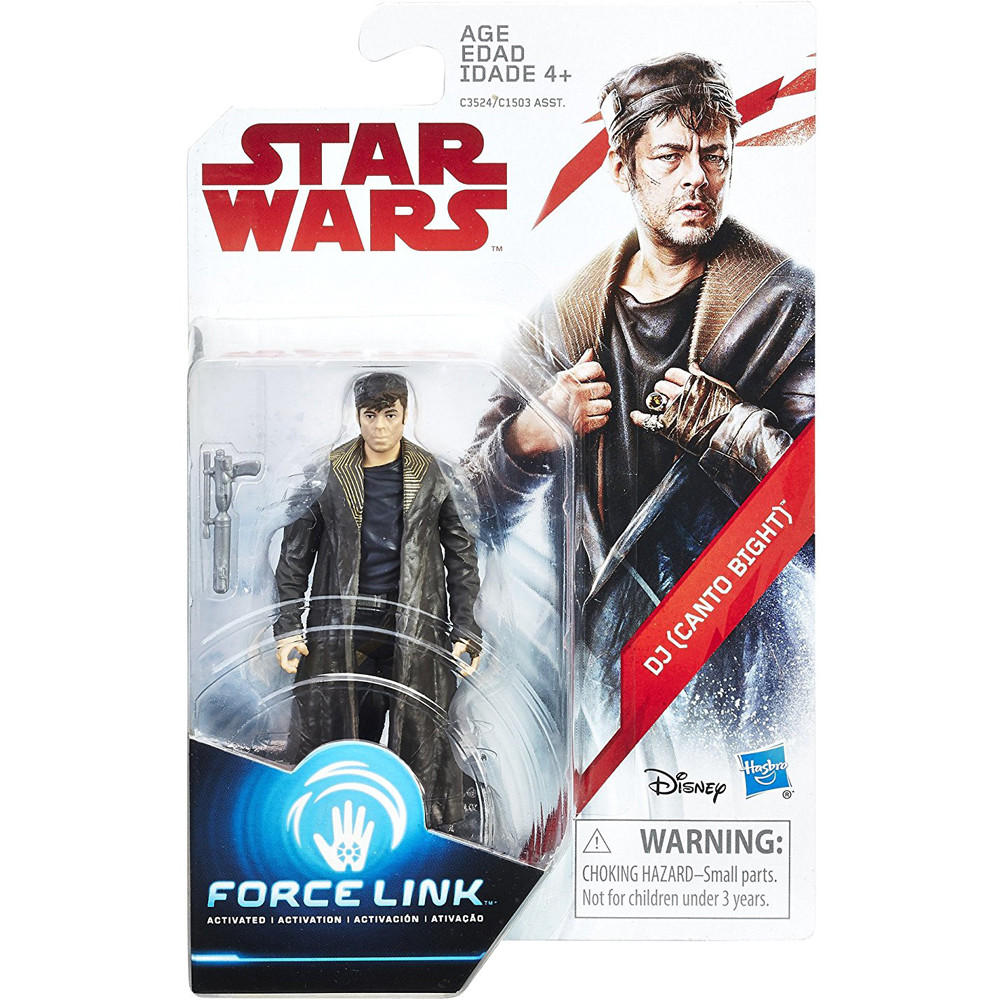 Bring the galaxy to life with Force Link! Recreate the adventures of a galaxy far, far away with Force Link, a new interactive play system from Hasbro that gives kids the sound effects and phrases from the Star Wars movies right in the palms of their hands! Wear Force Link wearable technology (Available in Starter Set. Sold separately) to activate lights, sounds, and phrases in Force Link-activated figures, accessories, vehicles, and playsets! With Force Link, kids can bring their favorite Star Wars adventures to life! When kids wear their Force Link wearable technology and pick up the 3.75-inch scale Star Wars DJ (Canto Bight) figure, they can activate authentic figure phrases and sounds! Figure includes movie-inspired design and a character-inspired accessory. May the Force be with you! Additional products each sold separately.