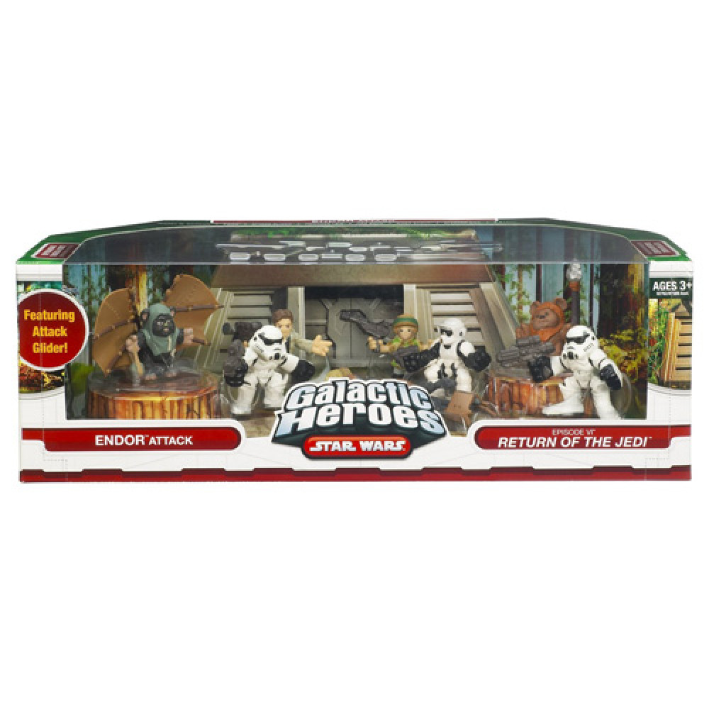 Relive the Battle of Endor! Direct from Return of the Jedi, the delightfully entertaining Endor Attack Set includes 2-inch Galactic Heroes of Wicket, a Scout Trooper, Han Solo, 2 Stormtroopers, an Ewok, Princess Leia, a Glider, and a Speeder Bike. You've got both the dark and light sides of the Force represented here. Which will prevail? And will the other end up as Gorax food? Regardless, you're gonna get a kick out of this!