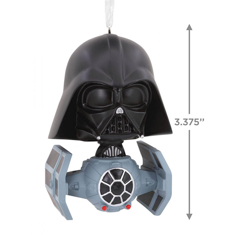 - Swing into the holiday spirit with this bobbling Christmas tree ornament. Stylized design features Darth Vader in his TIE Fighter with a fun wobbling head feature.