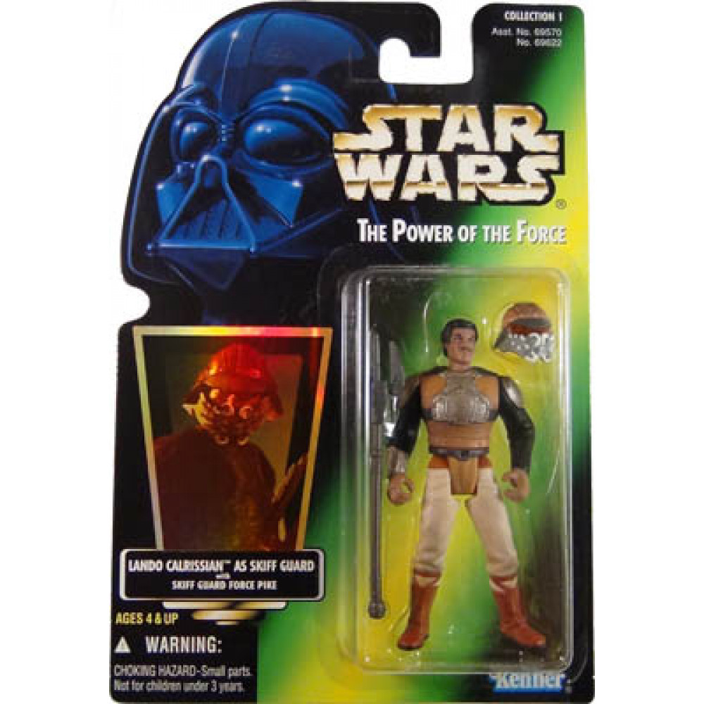 Kenner - A long time ago, in a galaxy far, far away. Star Wars: Power of the Force action figure line. Bring the Star Wars Universe to life with this line of fully posable and articulated 4 inch scale action figures and accessories. In an elaborate plan to free Han from Jabbas Palace, Lando infiltrates the stronghold disguised as a guard. Lando Calrissian as Skiff Guard comes complete with helmet and skiff guard force pike. Collect them all, each sold seperately. Collectors Note: The figure is on green card packaging. 538961.00