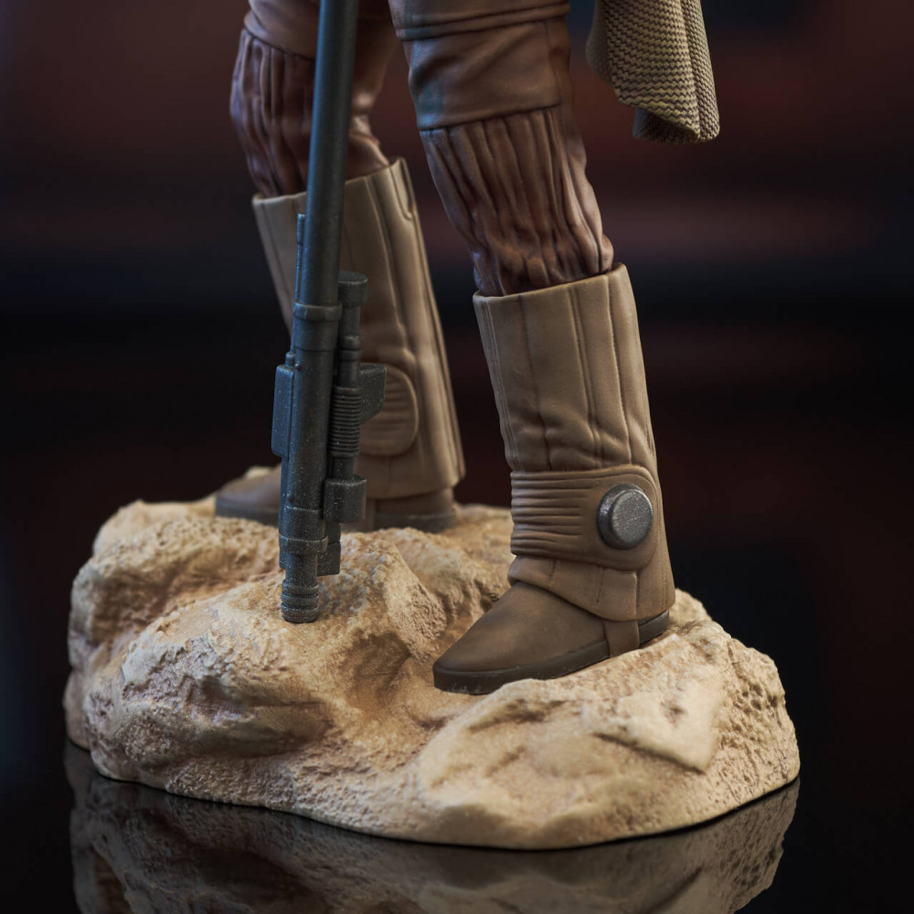 A Gentle Giant Ltd. release! Princess no more, Leia Organa goes undercover to rescue her true love in this all-new Star Wars statue by Gentle Giant Ltd. Disguised as Boushh, a bounty hunter, Leia holds a electro-shock lance and features an interchangeable head so she can wear or hold her helmet, and if you change out her right arm she?s holding a thermal detonator! Standing approximately 10 inches tall and limited to only 3000 pieces, she comes packaged with a certificate of authenticity in a full-color box.
