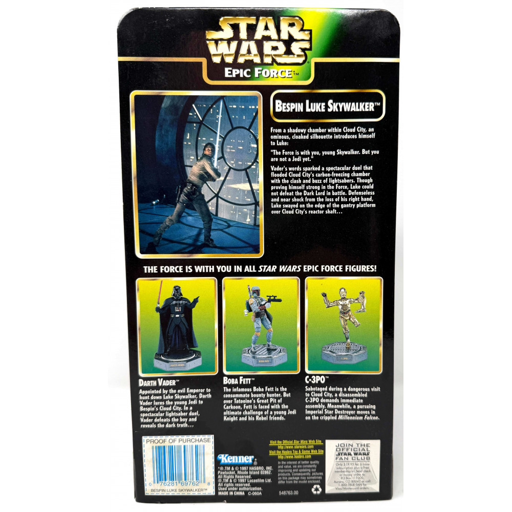 Hasbro - Luke Skywalker in Bespin Outfit Epic Force. Lured to Cloud City by the evil Empire, Luke Skywalker confronts the sinister Darth Vader and discovers a devastating truth as horrifying as the Dark Lord himself. Version Number 548767.00