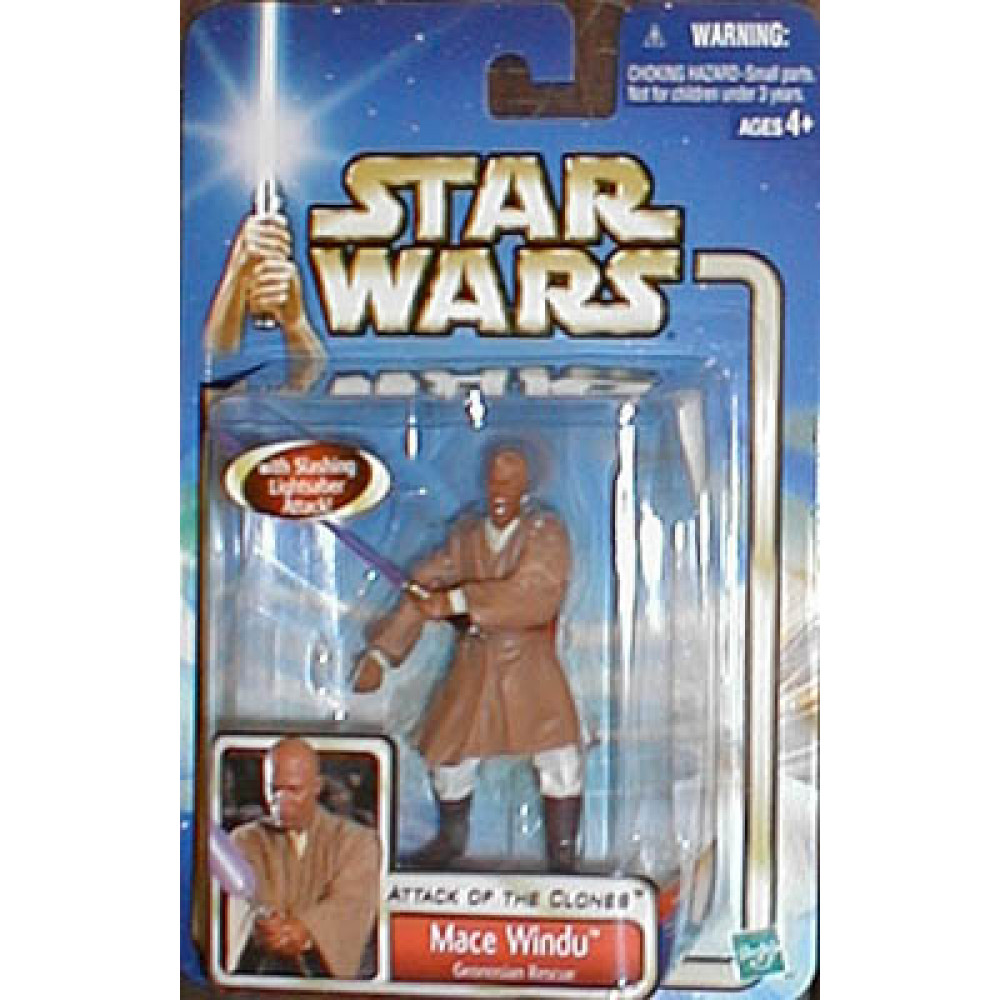 Hasbro - Calm and controlled, Mace Windu is a nobel Jedi Master and member of the Jedi High Council. Mace observes the widening divergence in the Republic with great fear, and he worries that there aren't enough Jedi to protect the galaxy during these critical times. Adding to the strife, a former Jedi and friend has resurfaced as leader of the very Separatist movement that threatens the Republic. When the Jedi Council is alerted to the location of the Separatist' armies, Mace assembles a league of Jedi to infiltrate the Separatist stronghold and subdue their massing forces.