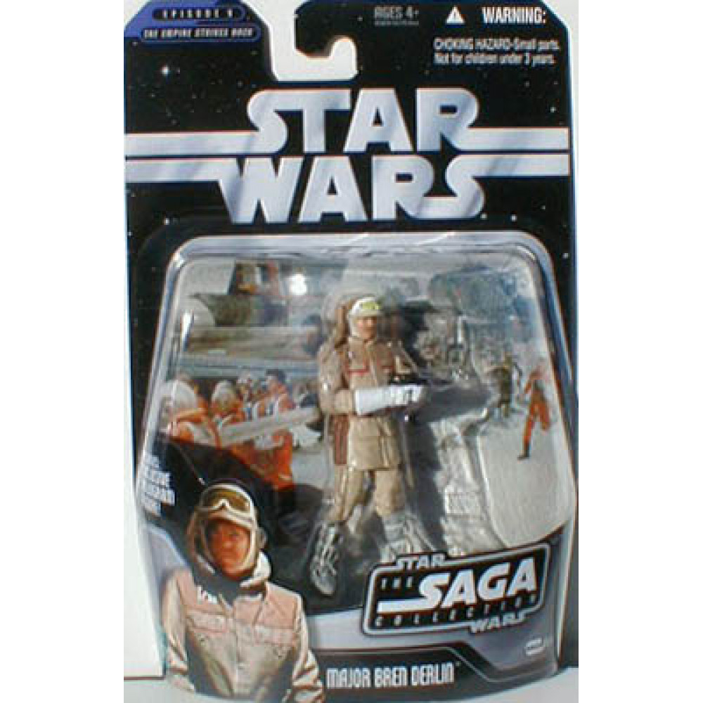 Hasbro - Episode V - The Empire Strikes Back Hoth Wave. Major Derlin was a field officer in the Rebel base on Hoth. When Han Solo and Luke Skywalker were stranded outside Echo Base, he informed Princess Leia that the shield doors would have to be locked for the night without them. Includes Rebel blaster.Major Bren Derlin - 3.75 inch Action Figure - The Saga Collection 008