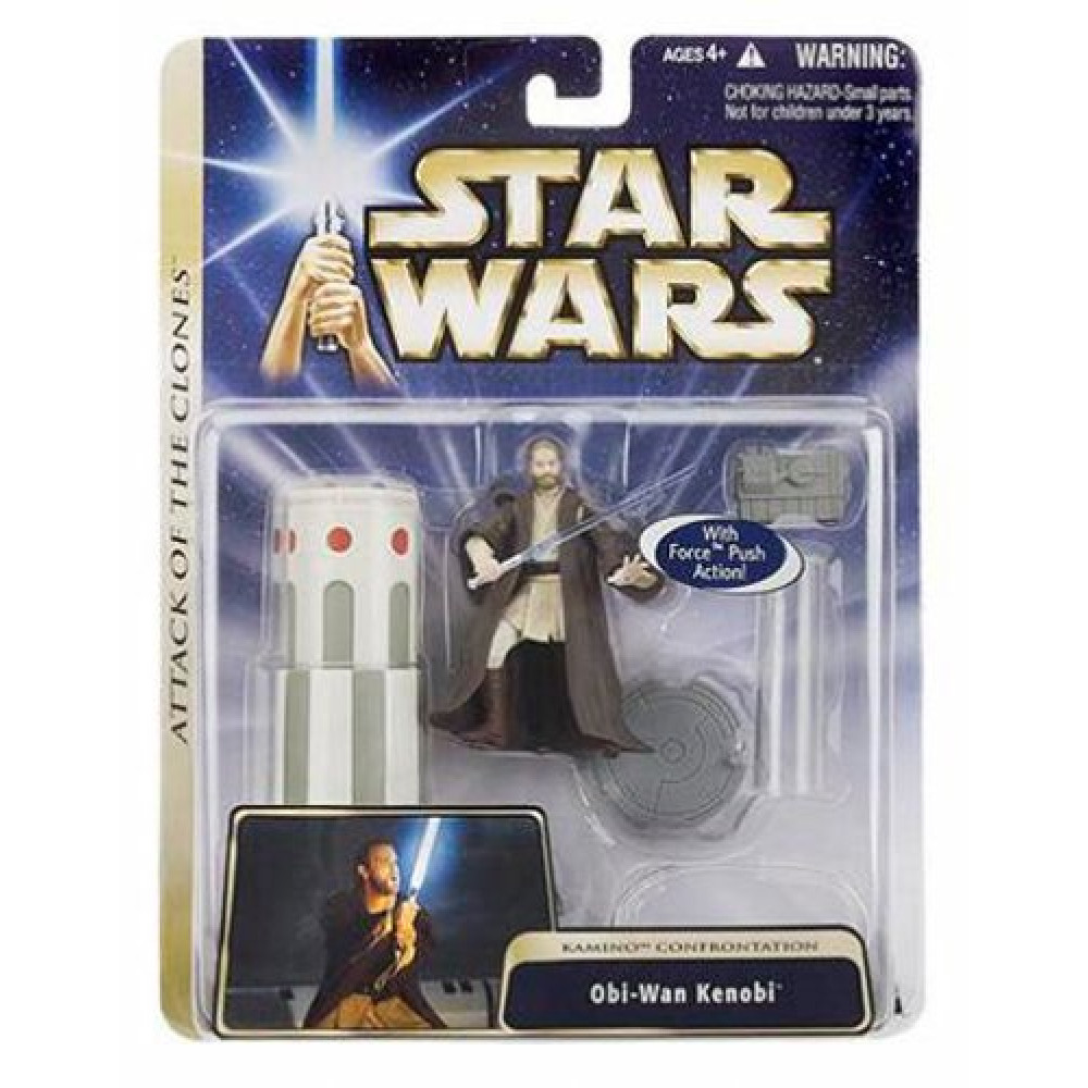 Hasbro - As his confrontation with the mysterious Jango Fett escalates into an explosive battle on a rain-battered landing platform on the planet Kamino, Obi-Wan Kenobi uses the power of the Force to fend off the savage attacks of the bounty hunter.