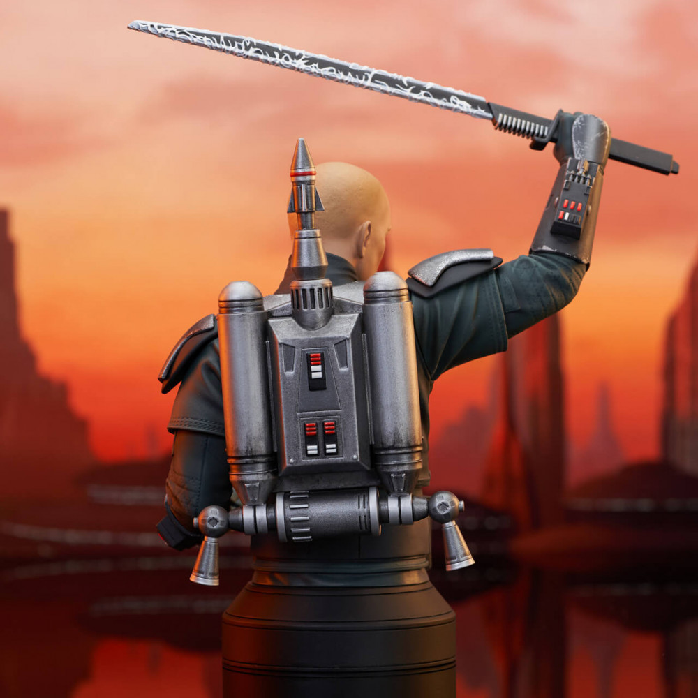A Gentle Giant LTD release! The leader of the Death Watch has arrived! Pre Vizsla, governor of the moon Concordia and secret leader of the famous Mandalorian commando group, is now the latest 1/6 scale mini-bust from Gentle Giant LTD! Raising the darksaber and measuring approximately 7 inches tall, this exclusive mini-bust features interchangeable helmeted and unhelmeted heads. Limited to only 750 pieces, it comes packaged in a full-color box with a numbered certificate of authenticity.