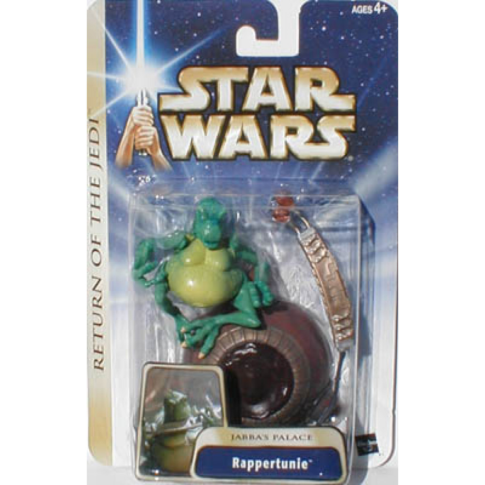 Hasbro - Rappertunie was the stage name for an amphibious Shawda Ubb musician in the Max Rebo Band, which was part of the entertainment in Jabba the Hutt's palace. As one of the band's back-up musicians, Rappertunie played the growdi, a combination of flute and water organ. While most of the band went to the Great Pit of Carkoon for the execution, Rappertunie elected to stay behind, thus saving his life.Package not mint
