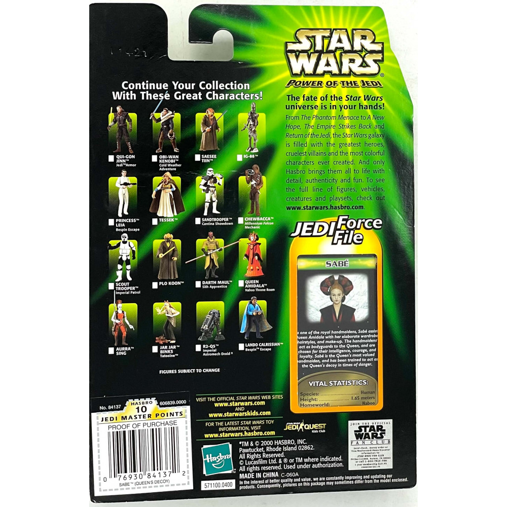 Hasbro - As one of the royal handmaidens, Sabe assists Queen Amidala with her elaborate wardrobe, hairstyles, and make-up. The handmaidens act as bodyguards to the Queen, and are chosen for their intelligence, courage, and loyalty. Sabe is the Queen's most valued handmaiden, and has been trained to act as the Queen's decoy in times of danger. Version Number 571100.0400