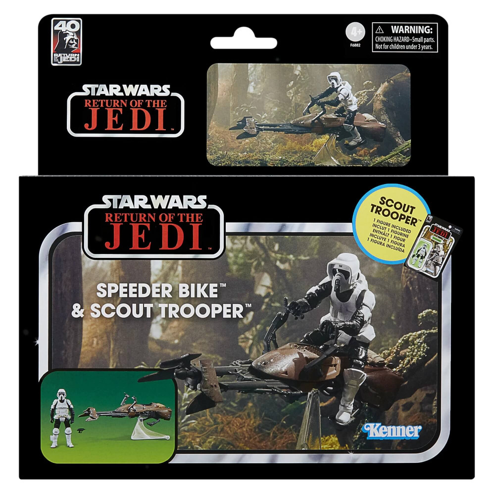 With realistic detail featuring multiple points of articulation inspired by Star Wars: Return of the Jedi, this collectible Star Wars The Vintage Collection 3.75-inch-scale Speeder Bike vehicle with Scout Trooper figure make a great gift for Star Wars fans and collectors.