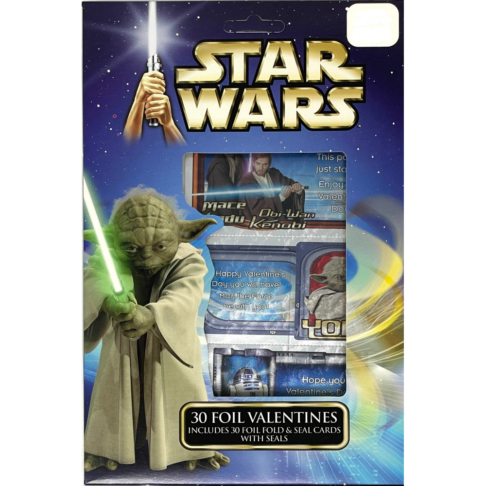 Star Wars 30 Foil Valentines & Seal Cards Yoda