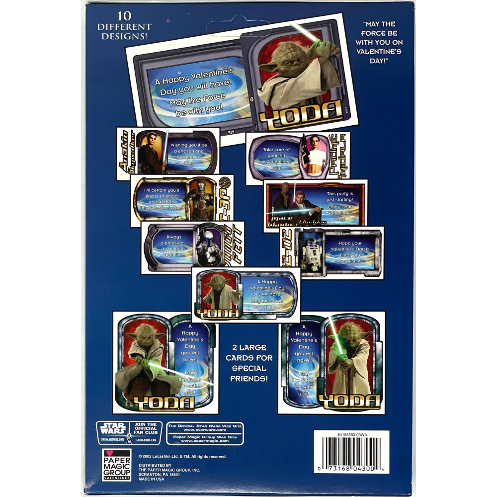 - Vintage 2002 Star Wars Valentines set by Paper Magic Group featuring bold foil accents and vibrant character art