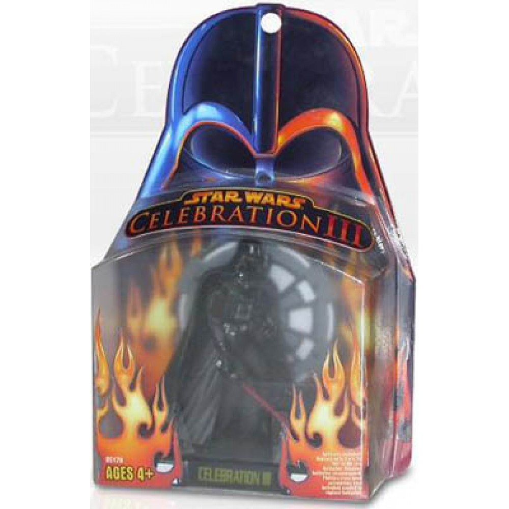 Hasbro - Hasbro and Lucasfilm unveil the new Darth Vader Celebration III action figure. None other than James Earl Jones, the legendary voice of Darth Vader, recorded new phrases exclusively for this special figure. The figure, a commanding Vader, is mounted on an exclusive base and in exclusive Celebration III packaging, and it. . .speaks! Jones' recorded lines for the figure include: 'The dark side of the Force is strong with you;' 'Your journey to the dark side is now complete;' 'Prepare to experience the Revenge of the Sith. It is your destiny;' and the soon-to-be-legendary 'Welcome to Star Wars Celebration III. Never will you find a more wretched hive of scum and villainy.' There is also a recording of the iconic Darth Vader breathing. Comes with a protech case designed exclusively for the figure.