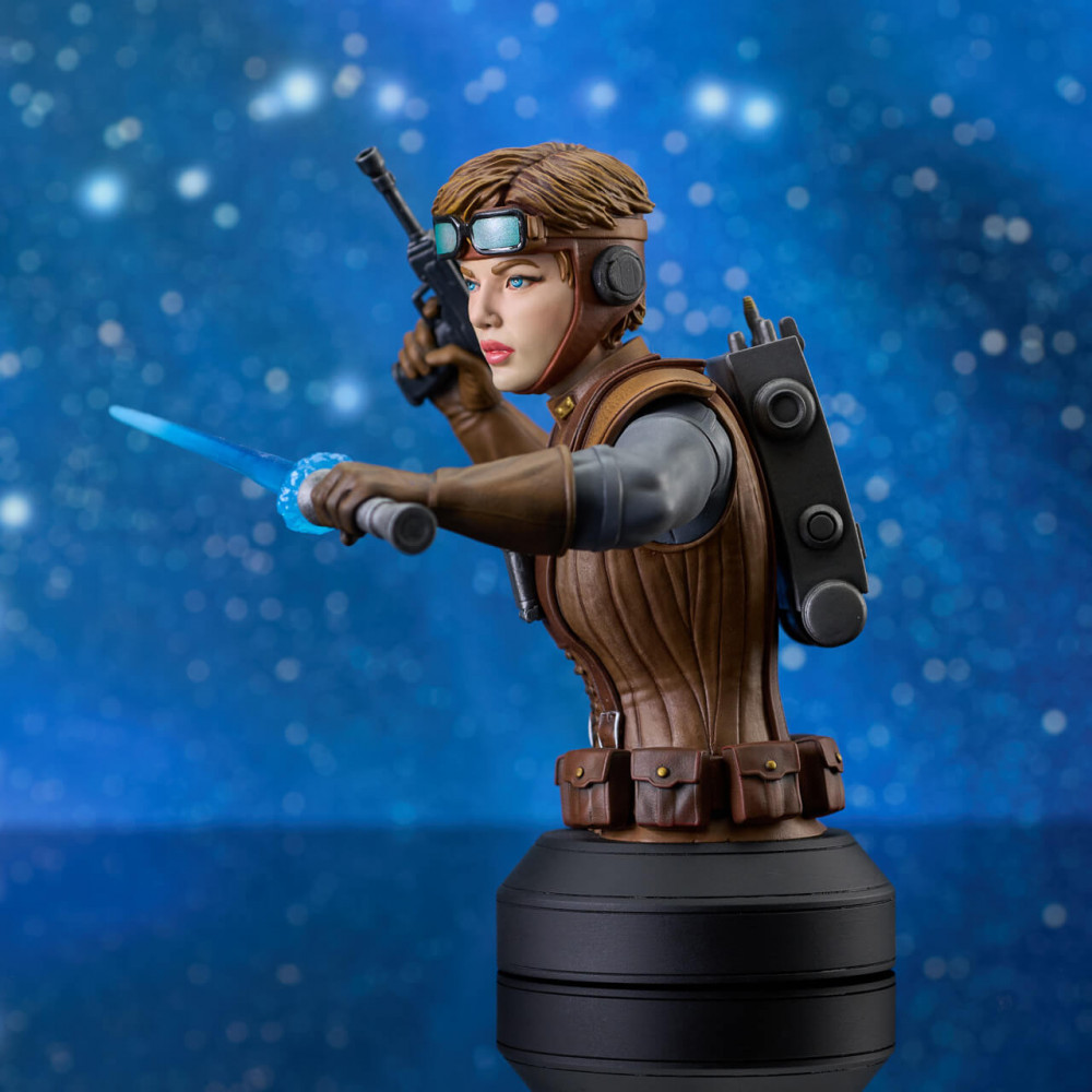 A Gentle Giant LTD release! Gentle Giant LTD returns to the origins of the Star Wars saga with another 1.6 scale mini-bust based on the concept art of Ralph McQuarrie! This mini-bust, depicting the original, female appearance of the Starkiller Hero, holds a lightsaber in one hand a blaster in the other. Standing approximately 6 inches tall and limited to only 750 pieces, it comes with a numbered certificate of authenticity, packaged in a full-color box.