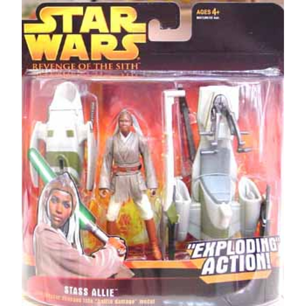 Hasbro - Episode III Revenge of the Sith. Exploding Action - BARC speeder changes into battle damage model. Jedi Master Stass Allie is an experienced warrior and field agent. She is also a skilled healer and a member of the Jedi Council. Riding a BARC speeder, Stass Allie uses her skills and the power of the Force in combat.