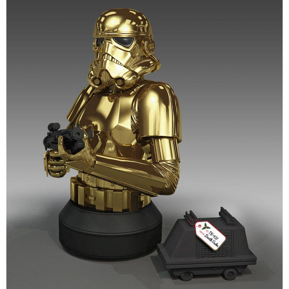 Gentle Giant has revealed a Premiere Guild Members (PGM) Exclusive 10 Year Commemorative Holiday Golden Stormtrooper Mini Bust. The 1/6 scale bust is being released to celebrate 10 years of bringing collectibles to their fans.