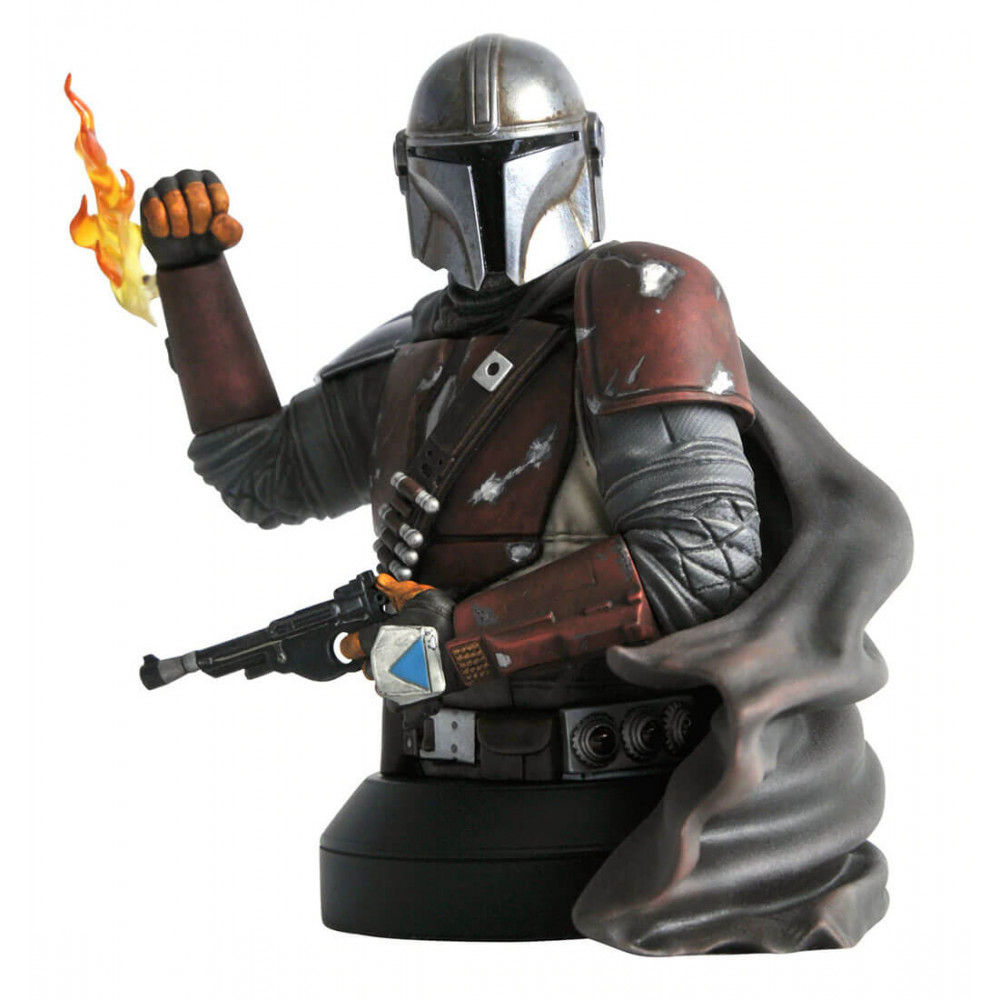 This beskar alloy is generous! Sporting the first pauldron to come from his beskar deposit, the Mandalorian prepares to execute his contract on the Child in this new variant bust from Gentle Giant Ltd. Measuring approximately 7 inches tall, it features detailed sculpting and paint applications, as well as translucent flame effects. Limited to only 500 pieces, it comes packaged in a full-color box with a numbered certificate of authenticity.